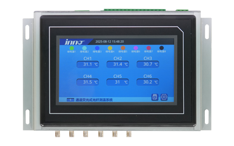 顯示一體化光纖測(cè)溫主機(jī),熒光光纖測(cè)溫顯示一體裝置,開關(guān)柜測(cè)溫系統(tǒng),英諾科技。顯示一體···